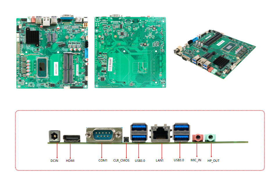 | Memory | 2*SO-DIMM DDR4 3200MHz Max32GB | Internal I/O | 1 * F_ AUDIO pin 1 * Speaker pin 1 * F_ PANEL pin 1 * SYS_ FAN pin 1 * CPU_ FAN pin 1 * EDP1 pin 1 * INVCN socket 1 * LVDS pin 1 * BKCL pin 1 * GPIO pin 2 * F_ USB2.0 pin (expandable 4 * USB2.0) 1 * F_ USB3.0 pin (expandable 2 * USB3.0) 1 * SATA socket 1 * SATA_ PWR socket 1 * GPIO pin 1 * ATX_ IN socket |