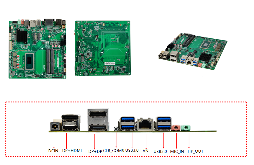 | CPU | Intel ® Core ™ 11th generation H-series processors | Post I/O interface | 1 * DCIN 1 * DP+HDMI port 1 * DP+DP port 2 * USB3.0 port 1 2 * USB3.0 Port 2 (1 * LAN optional) 1 * LAN port 1 * MIC-IN interface 1 * LINE OUT interface |