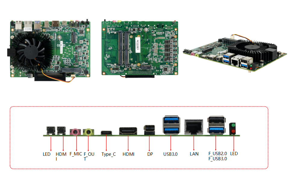 | CPU | Intel ® Celeron Whiskey&Cometlake processor | Post I/O interface | 1 * PSON button 1 * RST button 1 * F_ MIC port 1 * F_ OUT port 1 * Type-C port 1 * HDMI port 1 * miniDP port 2 * USB3.0 port 1 * LAN port 1 * USB2.0+USB3.0 Port Double Layer Seat 1 * REC button 1 * LED signal indicator light 1 * DCIN port 1 * OSPCN expansion slot |
