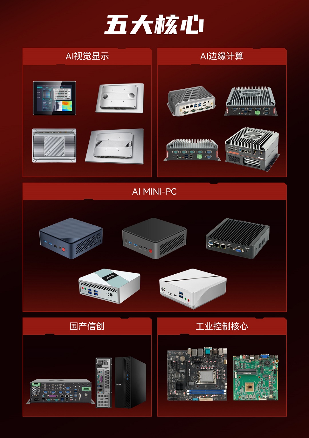 五大核心:AI視覺(jué)顯示、AI邊緣計(jì)算、AI MINI-PC、國(guó)產(chǎn)信創(chuàng)、工業(yè)控制核心