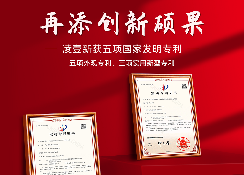 凌壹榮獲五項國家發(fā)明、五項外觀、三項實用新型專利