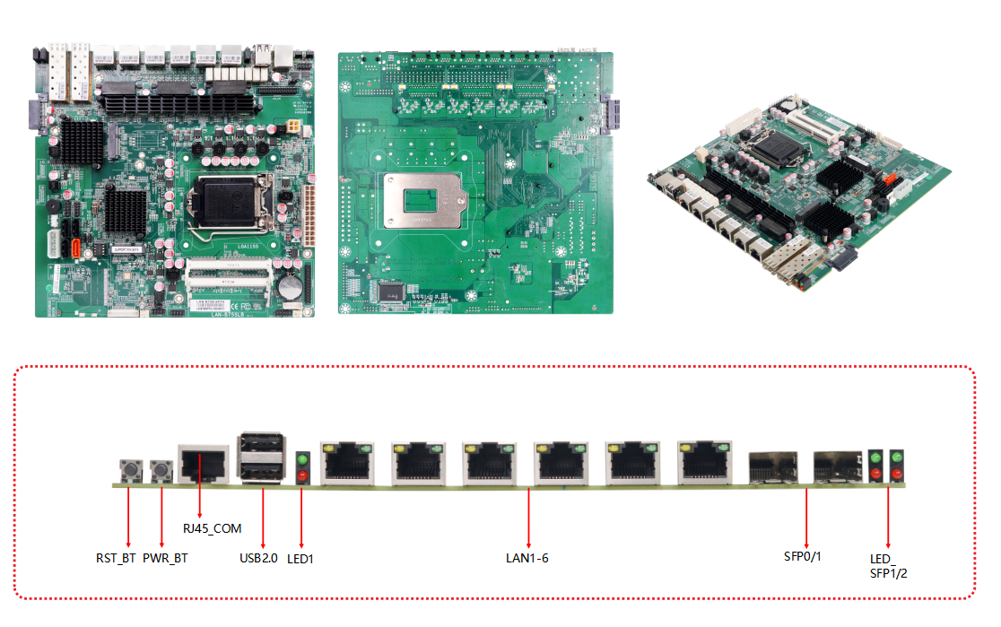 | 處理器 | Intel®Ivy Bridge賽揚G1610/G1620等 Processor | 后置I/O接口 | 1*RST_BT按鍵 1*PWR_BT按鍵 1*RJ45_COM端口 2*USB2.0端口 1*開關(guān)和硬盤指示燈 6*LAN端口 2*SFP光纖口 2*SFP狀態(tài)指示燈 |