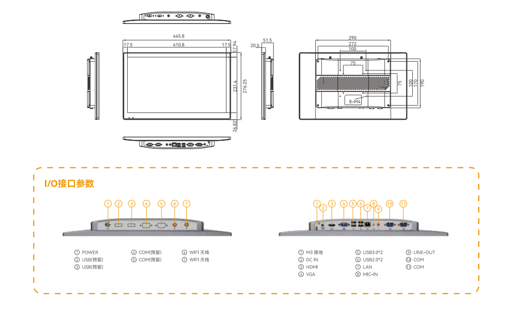 | 分辯率 | 1440*1900/1920*1080 | 整機功耗 | < 29W(屏15W),6-10代功耗稍高 | 機箱材質 | 鋁合金壓鑄殼體 |