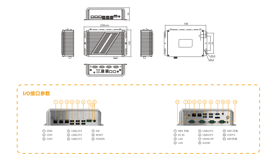 | 功能 | 支持WiFi、藍(lán)牙,4G、看門狗、支持無(wú)盤啟動(dòng)、網(wǎng)絡(luò)喚醒、上電開(kāi)機(jī) | |||