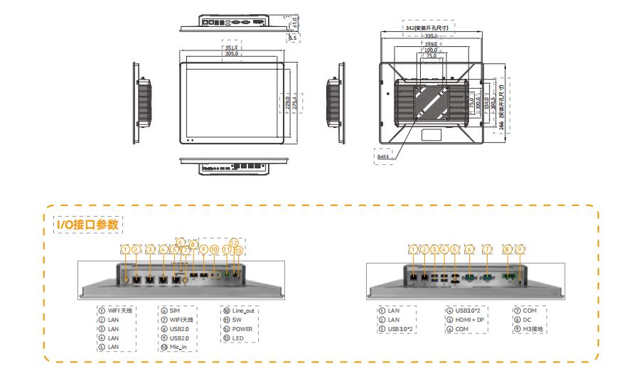 | 亮度 | 300cd/㎡ | 安裝方式 | 兼容嵌入式、壁掛式、桌面式 | ||