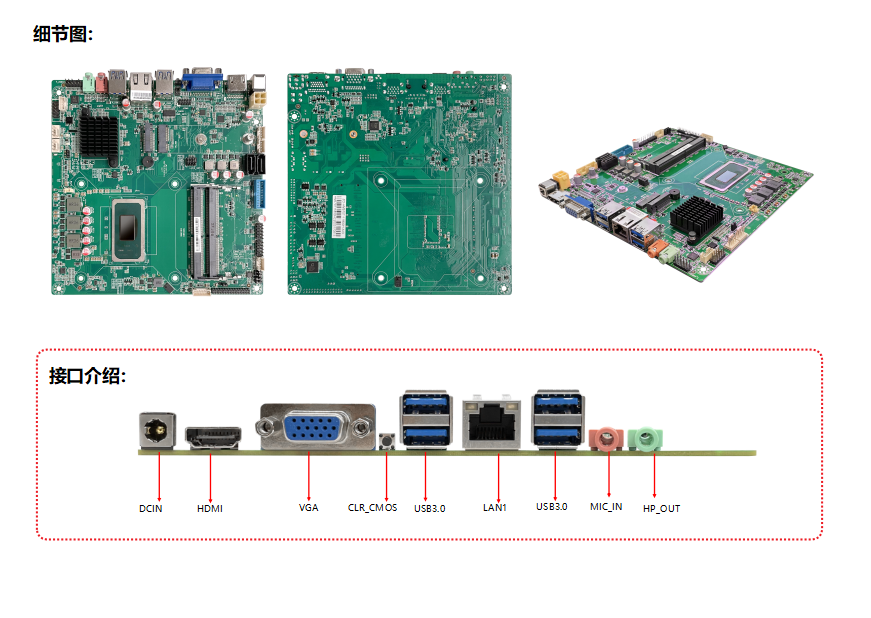 | 處理器 | Intel®Core™ Tiger Lake 11代H系列處理器 | 后置I/O接口 | 1*DC_IN端口 1*HDMI端口(可選HDMI+DP雙層座) 1*VGA端口(可選VGA/DP單層座) 1*CLR_CMOS按鍵 2*USB3.0端口 1*LAN1端口 2*USB3.0端口 1*MIC-IN接口 1*HP-OUT接口 |